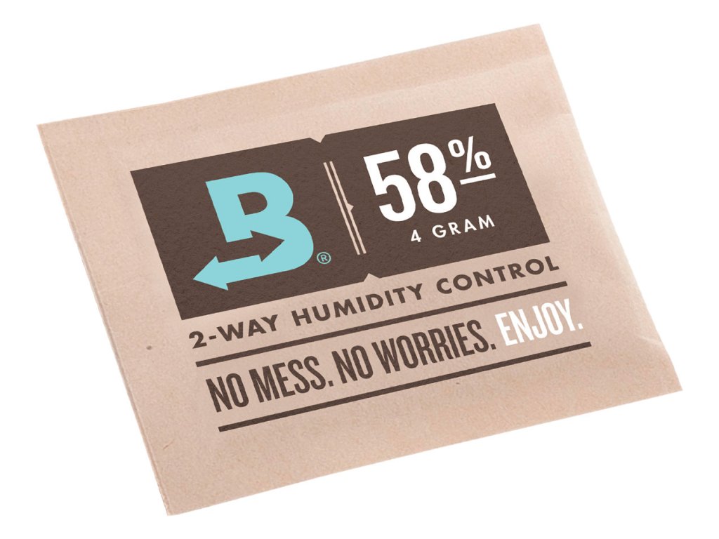 Unikalne torebki Boveda to świetny sposób na utrzymanie stabilnej wilgotności w zamkniętym pojemniku lub skrytce z marihuaną. Zawartość torebki jest mieszana w celu utrzymania stałej wilgotności na poziomie około 58%. Mieszanka w worku jest również specyficzna, ponieważ może wpływać i kontrolować wilgotność zarówno w górę, jak i w dół. Tak więc, jeśli wilgotność w worku jest niższa niż 62%, należy ją wyrównać, a jeśli wilgotność jest wyższa, należy ją zmniejszyć. Opakowanie produktu jest półprzepuszczalne, w wyniku czego sól może zarówno wytwarzać, jak i wciągać wilgoć.