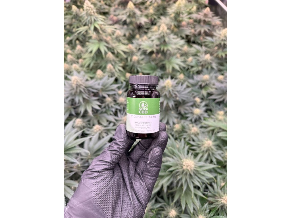 Kapsułki CBD z olejem konopnym fullspektrum i wysokiej zawartości kannabinoidu. Każda kapsułka zawiera 50 mg CBD i 0% THC.
