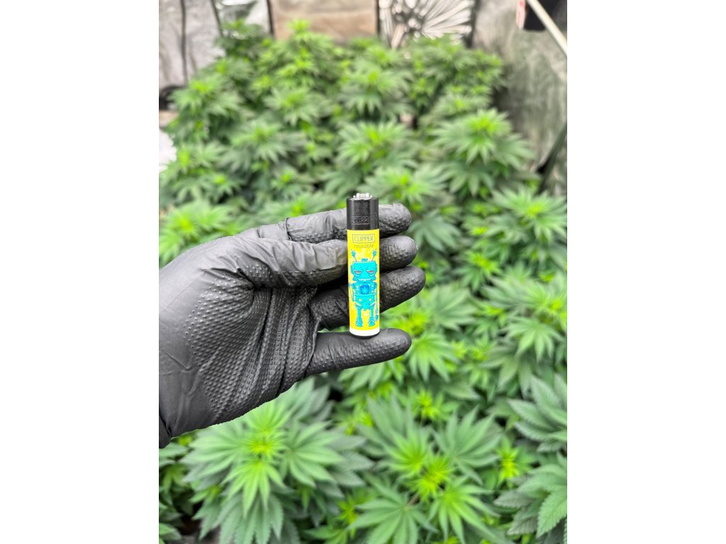 Zapalniczki Clipper z kolekcjonerskiej edycjio nazwie 420 Robots. Zapalniczki posiadają kolorowy nadruk z motywami robotów i marihuany.