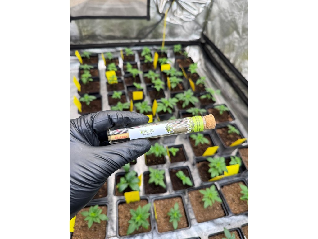 Náš pre-rolled CBD joint obdržíte ve znovu uzavíratelném skleněném a vzduchotěsném obalu, který následně můžete využít i na jiné bylinné cigarety. Uzavíratelný obal je také zárukou, že se jointy po cestě k vám nepoškodí a nebudou zbytečně vysychat. Jako znovu uzavíratelný obal byla použita skleněné joint tuba ze znovu uzavíratelným korkovým špuntem. Originální luxusní jointubu dostanete s každým jointem a lze ji opakovaně použít.