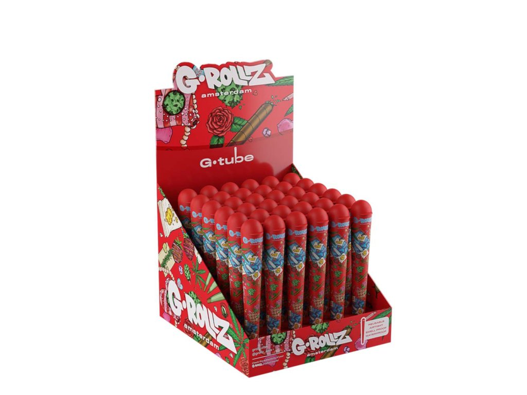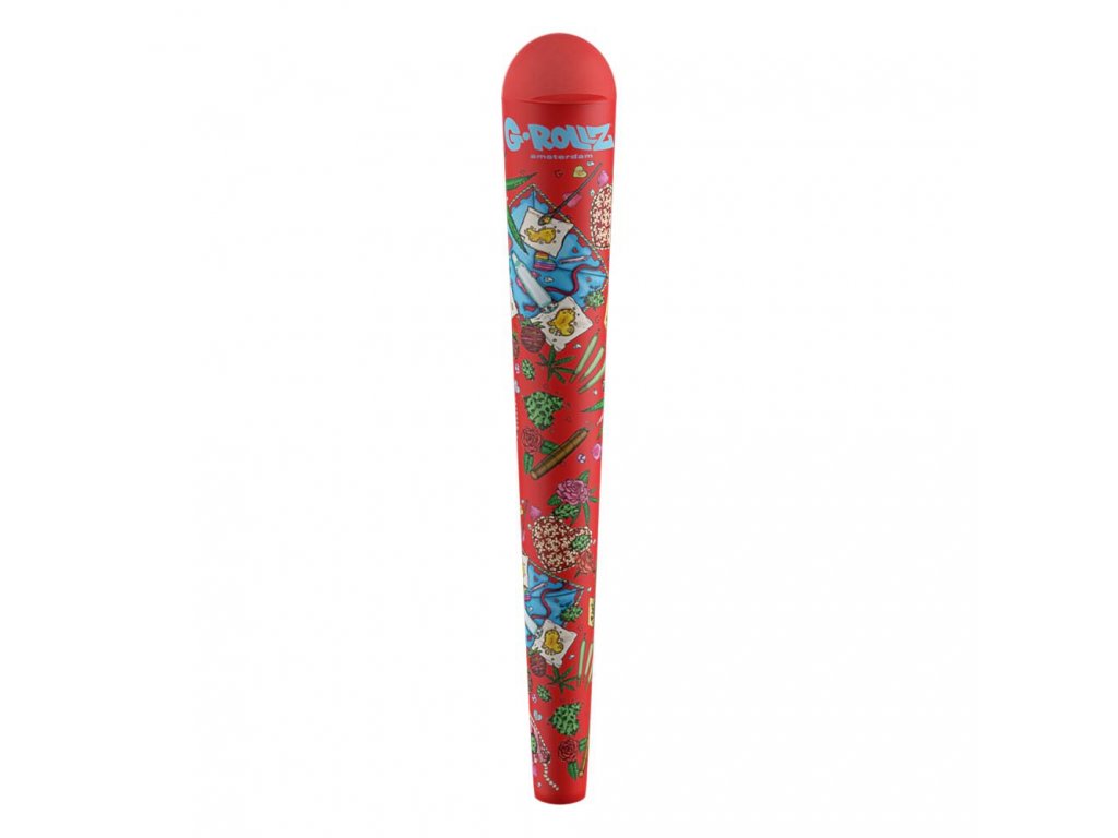 Praktyczne zamykane etui na jointa king size w czerwonym kolorze z logo G-Rollz.