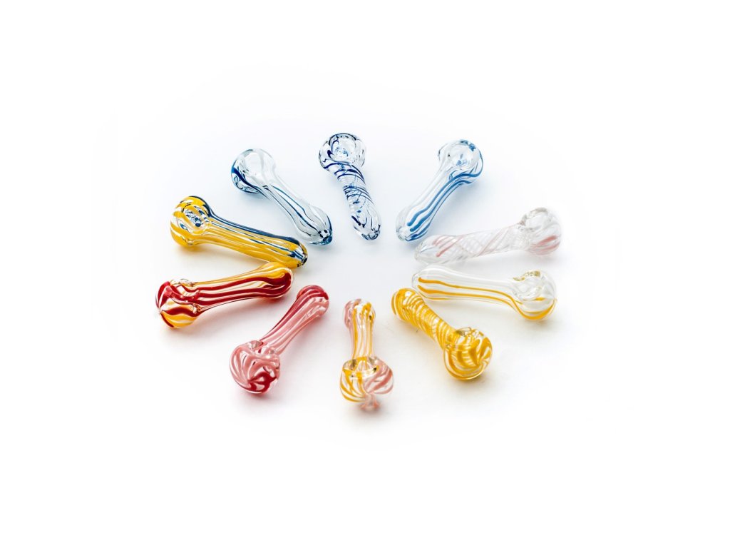 Klasyczna, a zarazem solidnie wykonana szklana fajka, lufka w efektownym, kolorowym wydaniu. Model o długości 7 cm został ozdobiony dekoracyjnymi paskami i spiralami, które nadają mu oryginalny, przyciągający wzrok charakter.