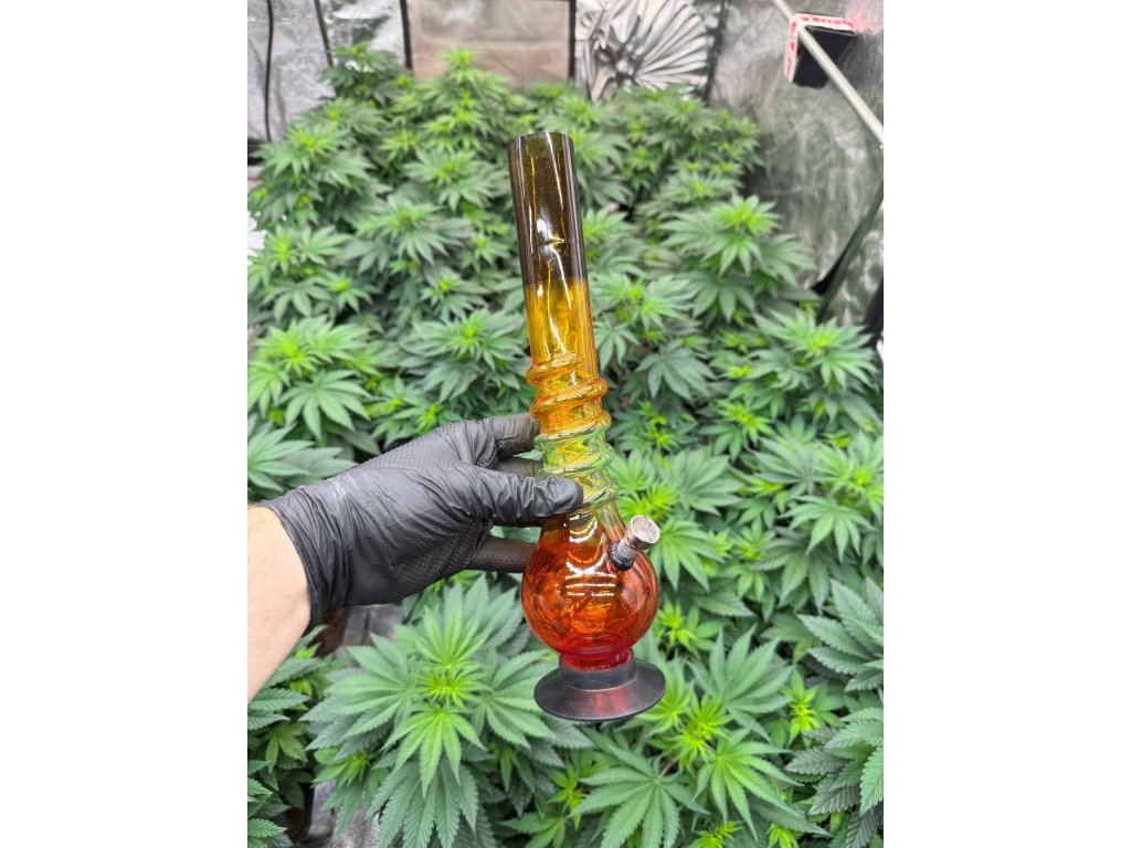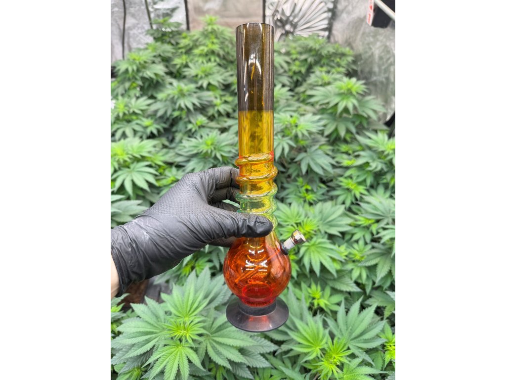 Małe akrylowe bongo wykonane z twardego i bezpiecznego dla zdrowia tworzywa sztucznego ze specjalnie ergonomicznie zaprojektowaną szyjką. Plastikowe bongo ma 32 cm wysokości i jest graficznie wykończone w trzech gradientach kolorystycznych. Występuje w wersji jamajskiej (czerwony, żółty, zielony) lub niebiesko-czerwono-białej. Akrylowe bongo nadaje się do przenoszenia, ponieważ jest wykonane z tworzywa sztucznego, dzięki czemu nie złamie się łatwo. Plastikowe bonga to bardzo przystępna cenowo alternatywa dla szklanych bong, które są również znacznie bardziej kruche. Akrylowe bongo będzie świetnym towarzyszem w drodze na wycieczkę i na szalone imprezy.