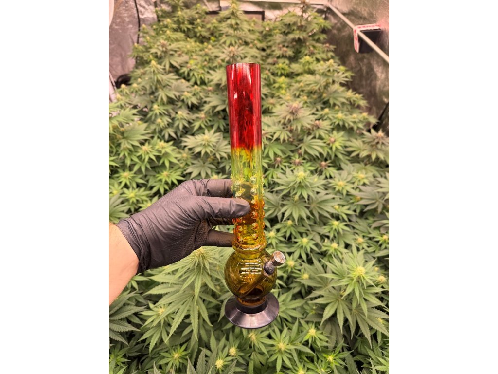 Małe akrylowe bongo wykonane z twardego i bezpiecznego dla zdrowia plastiku ze specjalnie perforowanym gryfem dla lepszego chwytu bonga. Plastikowe bongo ma 32 cm wysokości, szyjka ma średnicę 3 cm i idealnie pasuje do każdych ust. Dostępne jest w wariancie Jamaica (czerwony, żółty, zielony). Akrylowe bongo jest wygodne do przenoszenia, ponieważ jest wykonane z tworzywa sztucznego, dzięki czemu nie złamie się łatwo. Plastikowe bonga to bardzo przystępna cenowo alternatywa dla szklanych bong, które są również znacznie bardziej kruche. Akrylowe bongo będzie świetnym towarzyszem na wycieczkę i na szalonych imprezach.