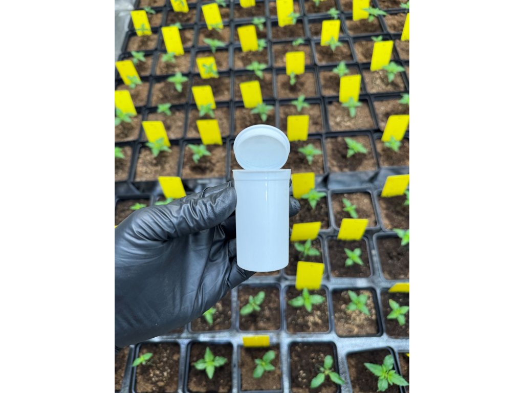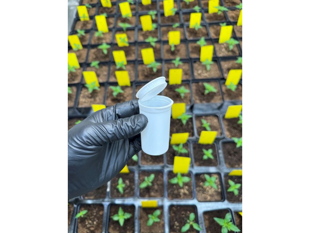 Pojemnik na marihuanę i konopie z zakrętką 70 ml w kolorze białym.