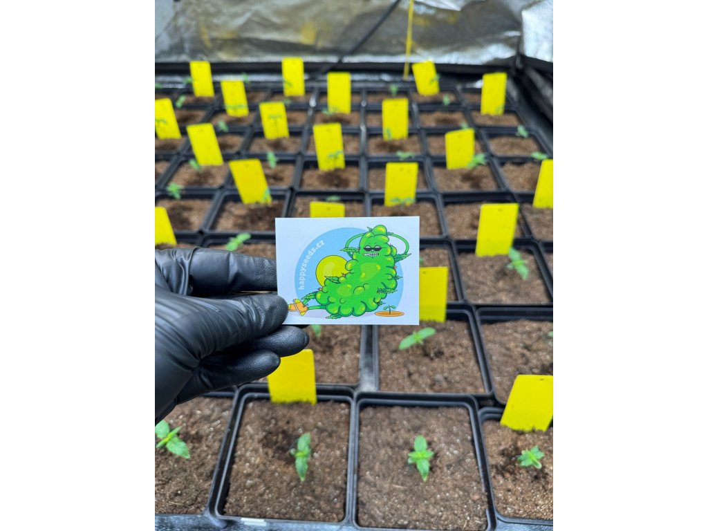 Zazwyczaj nasze naklejki są prezentem przy zakupach w naszym sklepie internetowym www.happyseeds.cz, ale ze względu na duże zainteresowanie postanowiliśmy umożliwić ich sprzedaż również za pośrednictwem naszego drugiego sklepu internetowego. Na naklejce znajduje się nasza maskotka, laska marihuany w chillowym wydaniu.