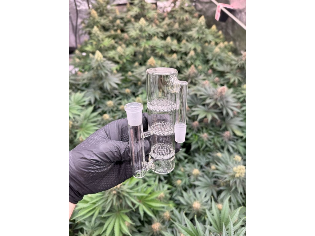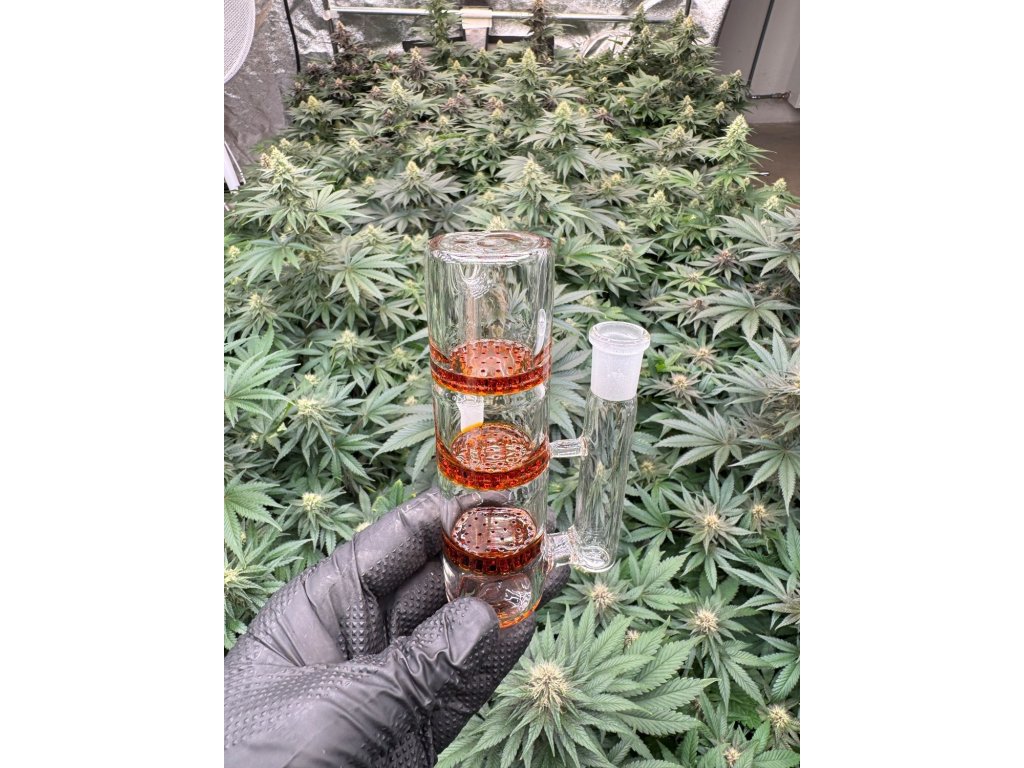 Szklany precooler z 3x honeycomb w różnych kolorach, pasujący do bongów z prostym lub prostopadłym szlifem o grubości 14,5 mm. Świetny precooler dla wszystkich fanów honeycomb perkolacji. Trzy perkolatory o strukturze plastra miodu zapewniają doskonałe uszlachetnienie dymu, a wspaniały efekt chłodzenia jest osiągany przy każdym użyciu