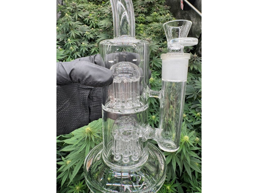 Bongo szklane o wysokości 30 cm z dwiema 8-arm perkolatorami w przezroczystym kolorze.