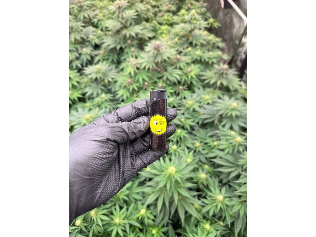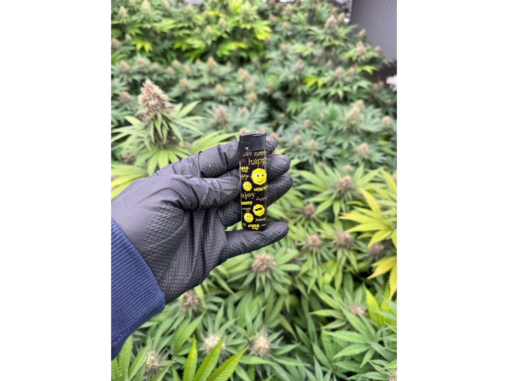 Zapalniczka piezoelektryczna wielokrotnego użytku z możliwościa ponownego nabicia gazem. Ozdobiona różnymi motywami emotikonków smile