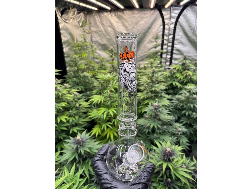 Szklane bongo do palenia z kolbą o prostej konstrukcji. Na szklanym bongo znajdziesz oryginalny odcisk lwa. Bongo o ładnym designie w dobrej cenie.