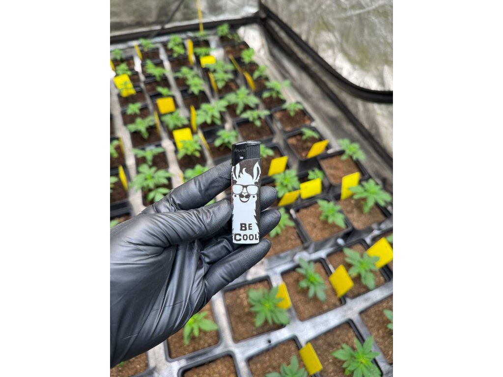 Zapalniczka z możliwością wielokrotnego napełniania z różnymi motywami nawiązującymi do konopi indyjskich lub marihuany. Zastosowany system zapalniczki jest nazywany piezoelektrycznym.