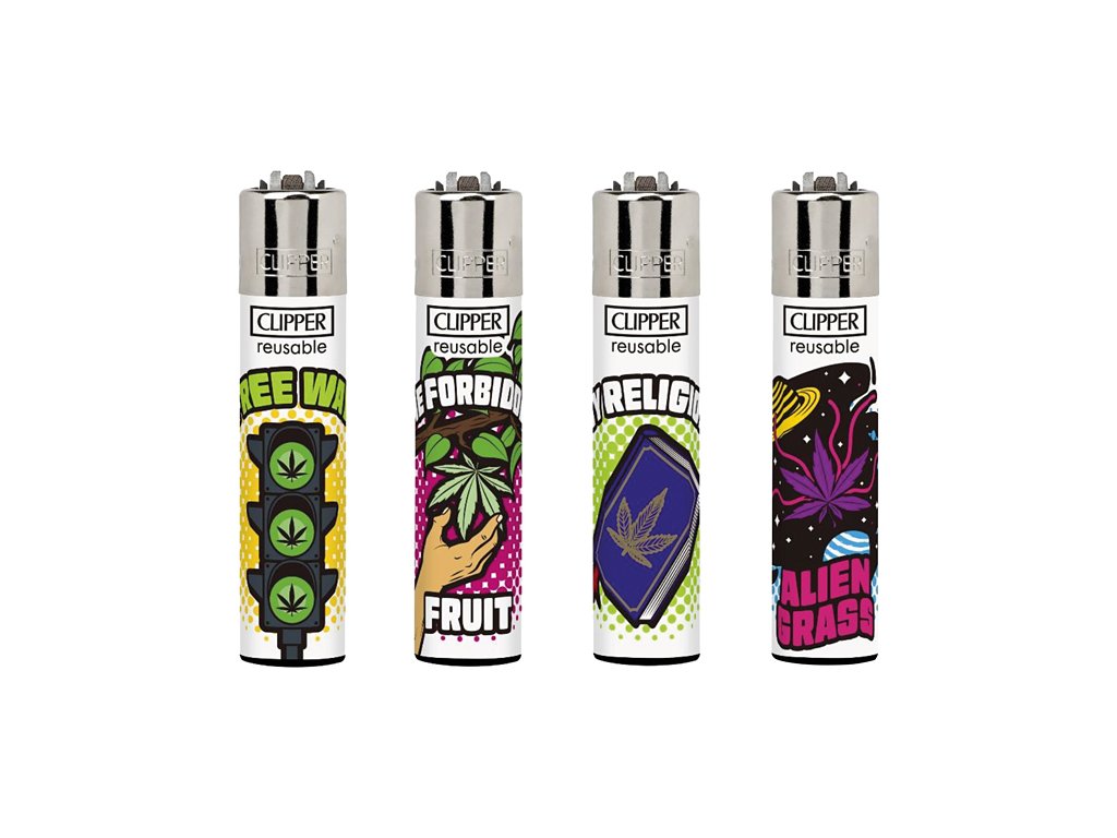 Zapalniczki Clipper z limitowanej kolekcji Weed Laws dostępne są w czterech kolorowych wariantach ozdobionych motywami konopi. Każda z nich jest oryginalna i, tak jak wszystkie produkty Clipper, rozbieralna — co pozwala na wymianę wszystkich jej części.