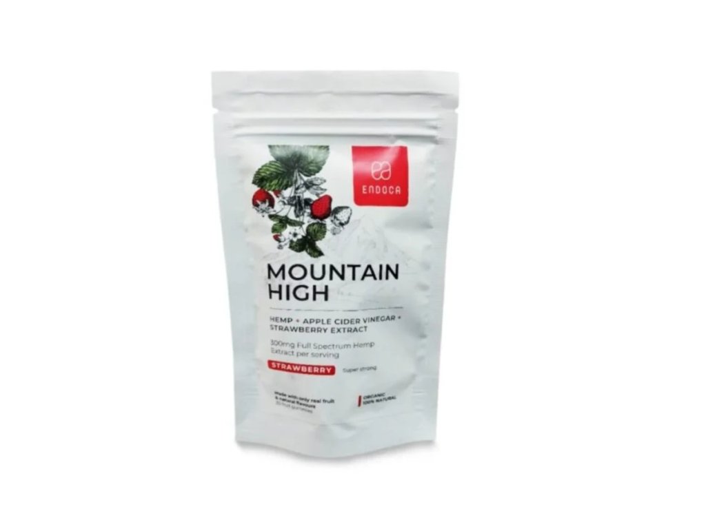 Słodkie żelki „Mountain High” od skandynawskiej firmy Endoca to naturalny produkt konopny o wysokiej zawartości CBD i 0% THC. Wariant „Restore” zachwyca słodkim, truskawkowym smakiem i w 100% naturalnym składem, który wspiera relaks i pomaga wyciszyć umysł. Każdy żelek zawiera 30 mg organicznego oleju konopnego, pozyskanego z ekologicznie uprawianych roślin konopi, całkowicie pozbawionych THC. Smak truskawek pochodzi z organicznego ekstraktu z prawdziwych truskawek, co nadaje żelkom naturalną, owocową słodycz.